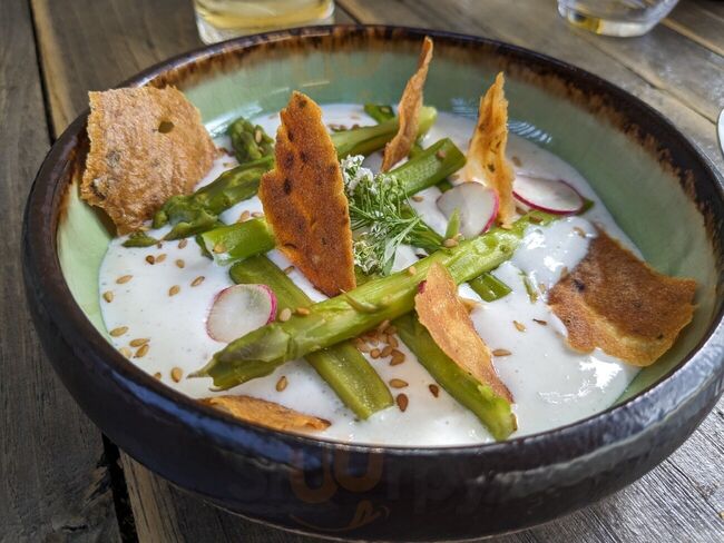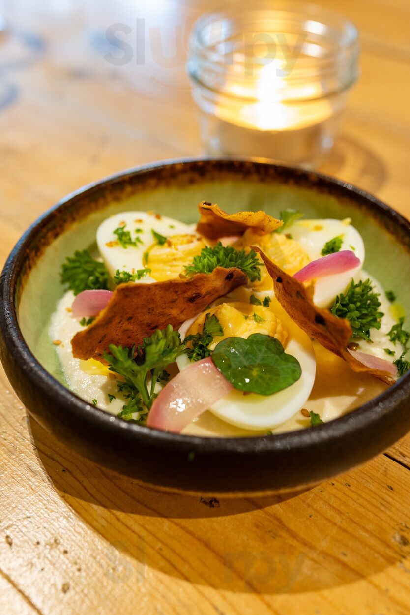 Délicieux! Recherché. Vaisselle magnifique. Entrée plat dessert pour déjeuner. Super service. Terrasse très agréable bien que le soleil d’août ne soit pas au rendez-vous :(